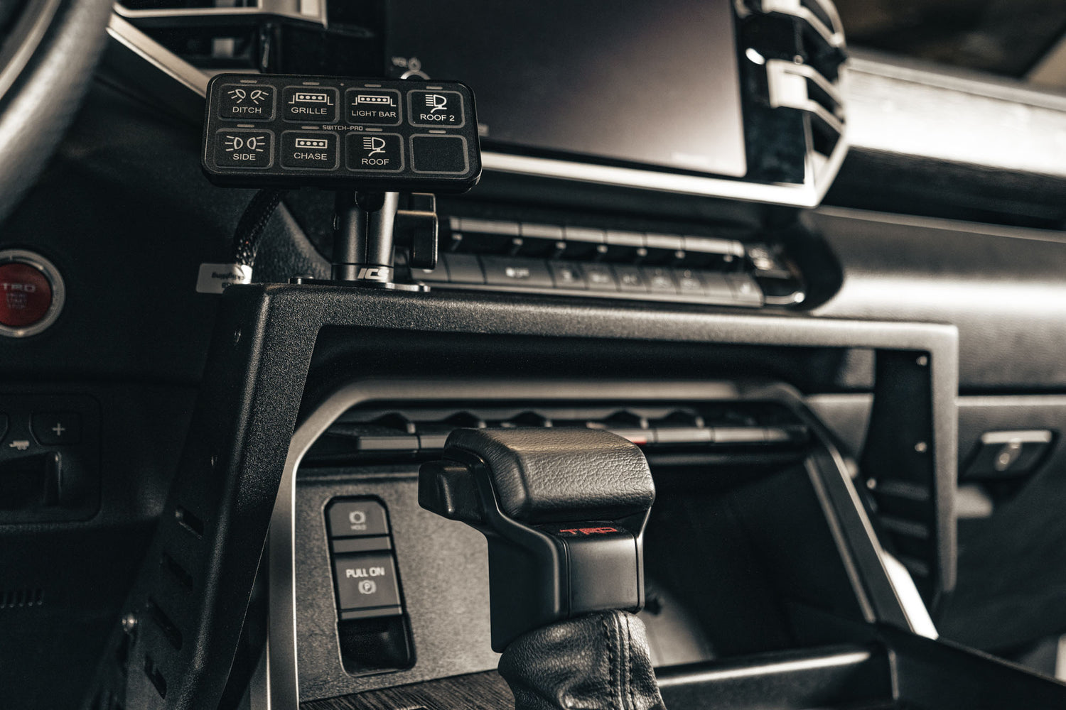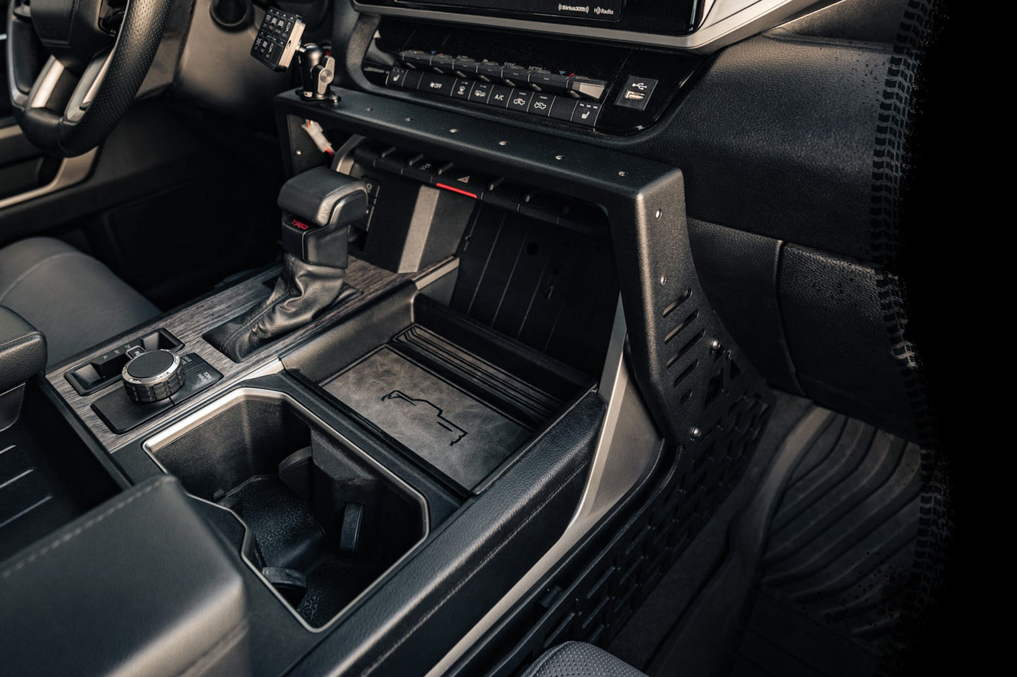 If you're looking for a practical way to make your day to day life easier while on- or off-road, our 3rd Gen Tundra or Sequoia Center Console Molle Panels & Device Bridge has you covered. This molle & bridge combination provides an efficient way to securely mount anything from pouches and small tools, to smartphones, GPS, and radios. Its low-profile, seamless integration compliments the factory lines of the vehicle.
