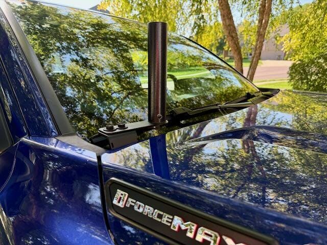 I ordered this bracket along with the Ditch Light brackets to mount my VHF/UHF antenna. The installation is simple following the online instructions. I only used 1 of the Ditch Light brackets, maybe I'll add lights later. I used a PulseLarsen NMOHFMID NMO mount which has a right-angle PL-259 on the bottom. It fit the bracket perfectly. I did have to buy the two bolts and nuts to attach the antenna bracket to the light bracket. NOTE: This happens to be a perfect location to run coax through an existing, unused grommet in the firewall right below where the mount is.