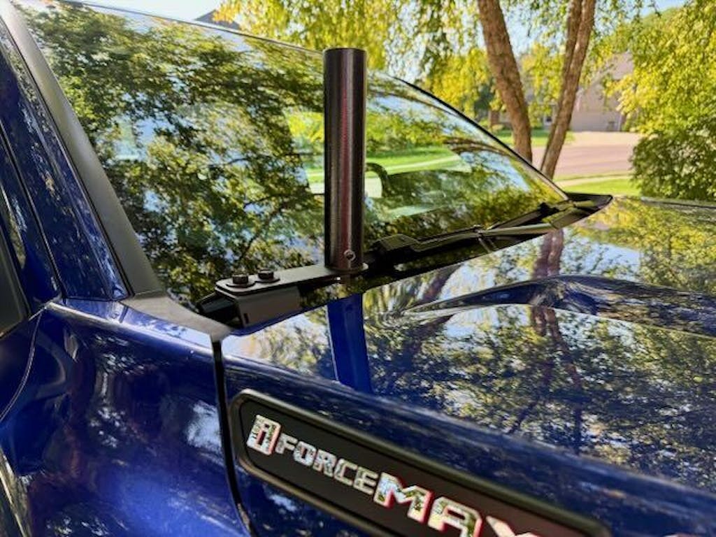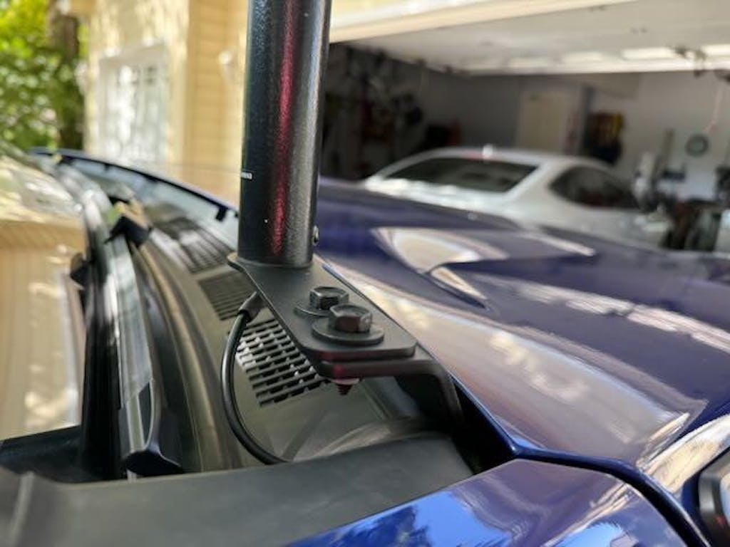 I ordered this bracket along with the Ditch Light brackets to mount my VHF/UHF antenna. The installation is simple following the online instructions. I only used 1 of the Ditch Light brackets, maybe I'll add lights later. I used a PulseLarsen NMOHFMID NMO mount which has a right-angle PL-259 on the bottom. It fit the bracket perfectly. I did have to buy the two bolts and nuts to attach the antenna bracket to the light bracket. NOTE: This happens to be a perfect location to run coax through an existing, unused grommet in the firewall right below where the mount is.
