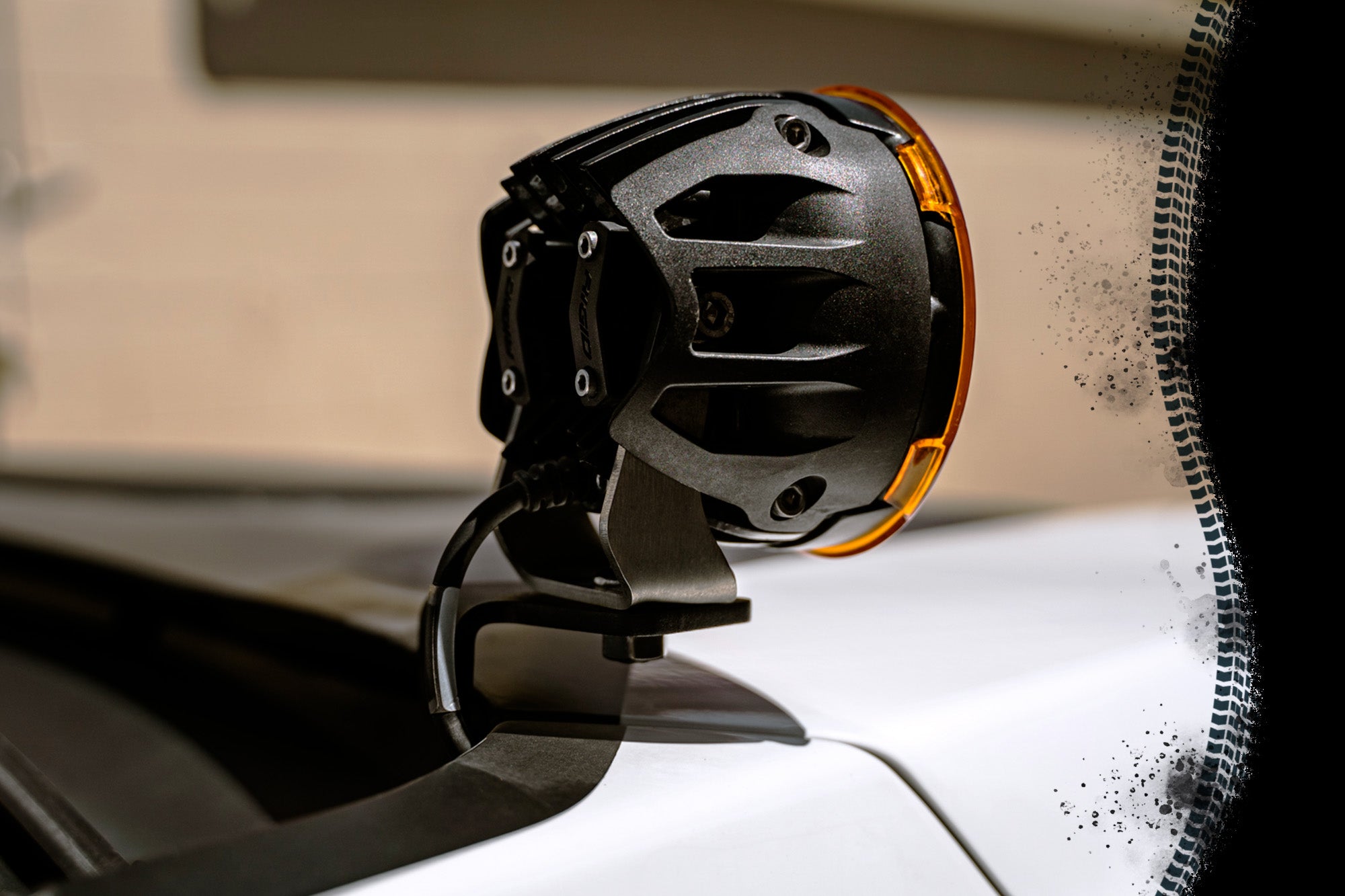These pod light brackets enable you to to add additional forward facing light for the trail ahead. Alternatively, if you're running your truck down a more treacherous path, you can angle your pods downwards and to the sides. This will light up any ditches, ruts, or large obstacles at the edge of your trail so you can avoid them.