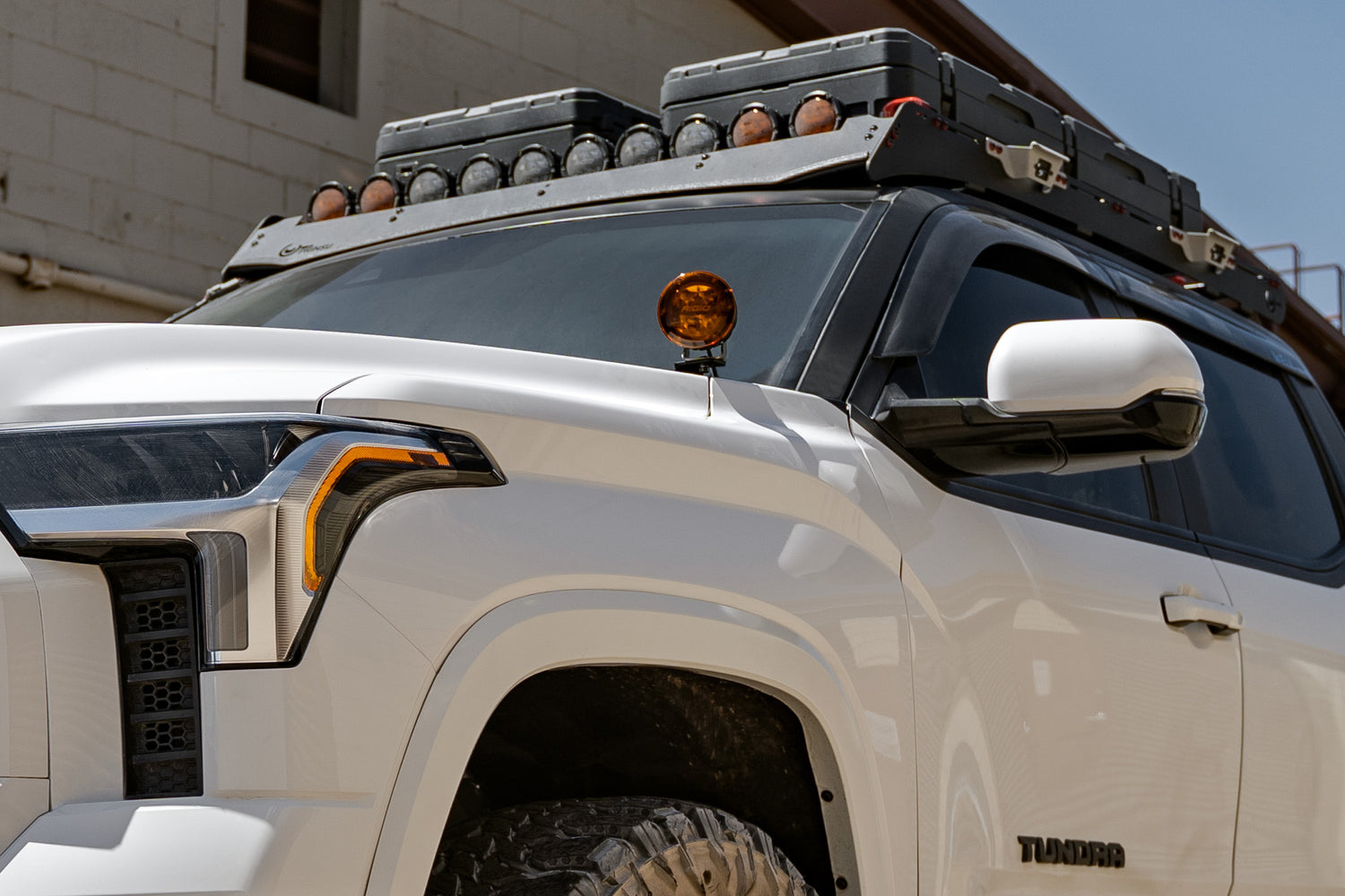 Our 3rd Gen Tundra Ditch Light Brackets are the perfect accessory to enhance the functionality and aesthetics of your truck. Designed specifically for the Tundra, these brackets allow you to easily mount a LED light pod on each side of the hood, giving you improved visibility and a rugged, off-road look. One of the standout features of our brackets is their low-profile clean look. The design integrates seamlessly with the lines of your truck, enhancing its overall appearance without compromising on functionality.